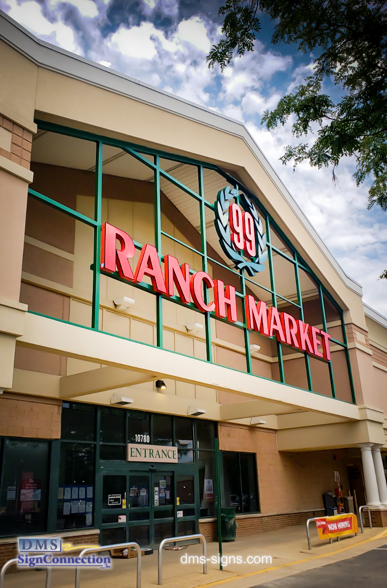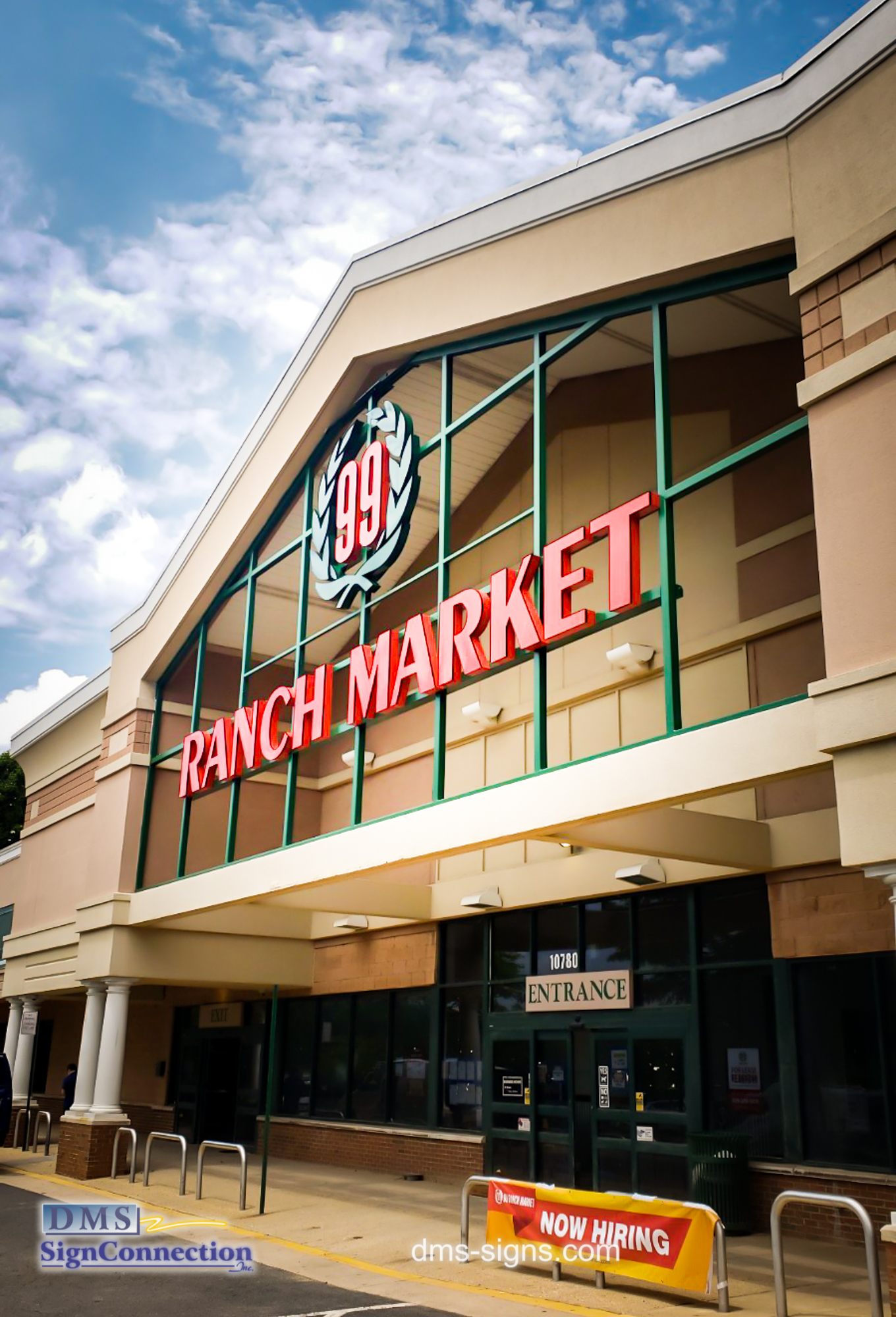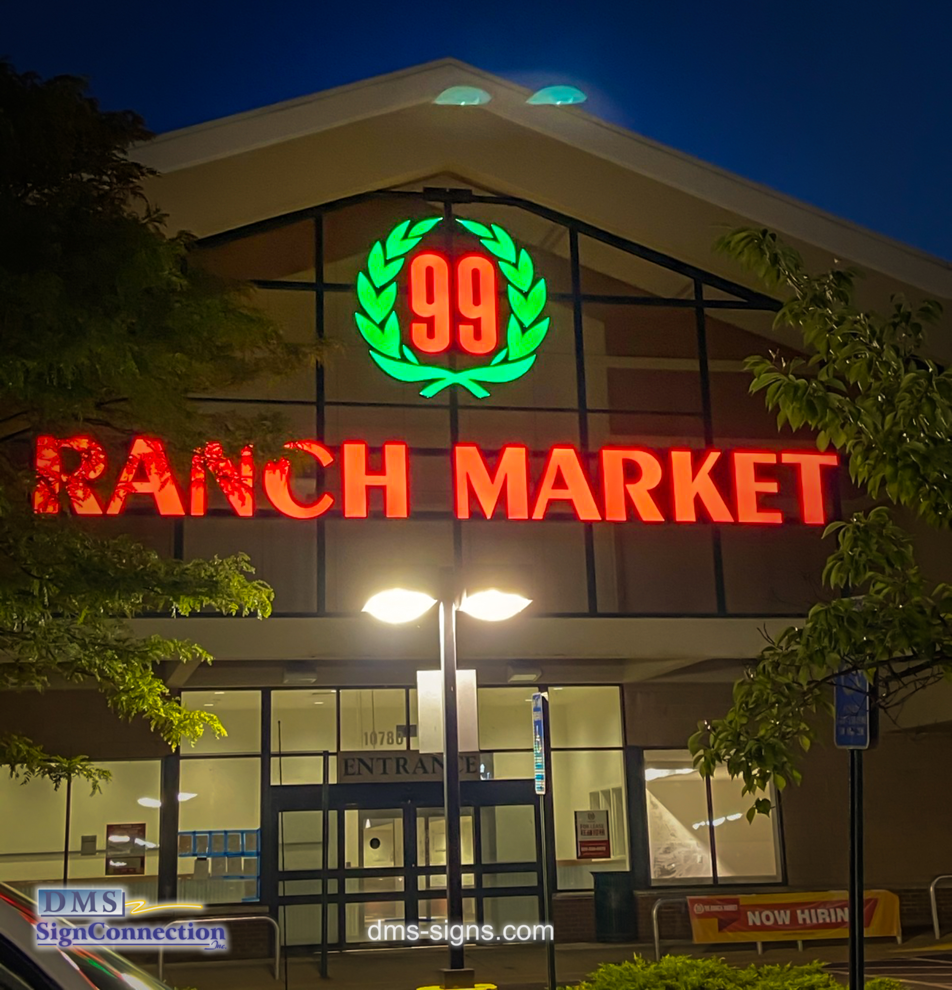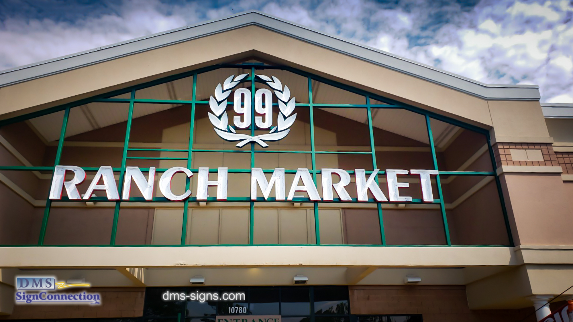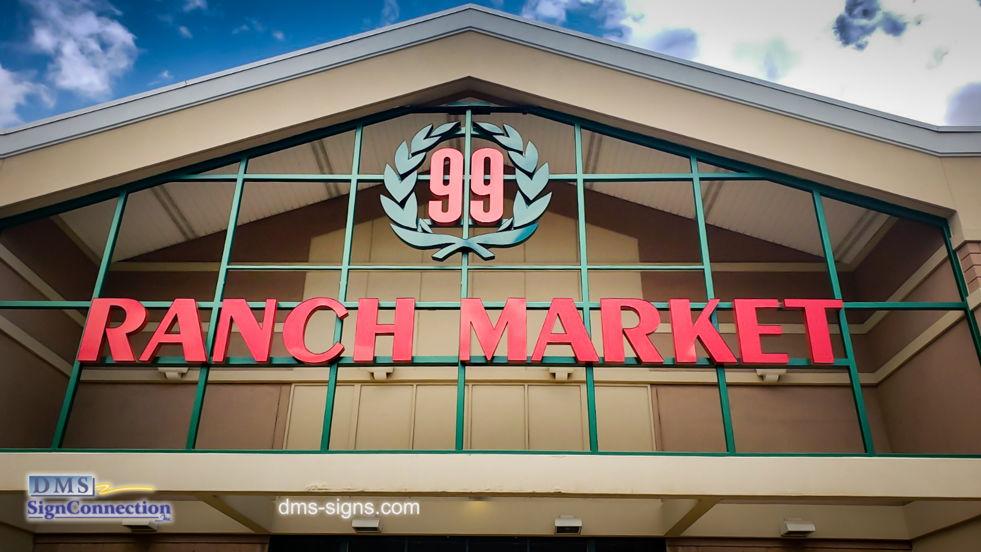 - 99 Ranch Market Channel Letters built and installed by DMS signs. Finished project view from the left