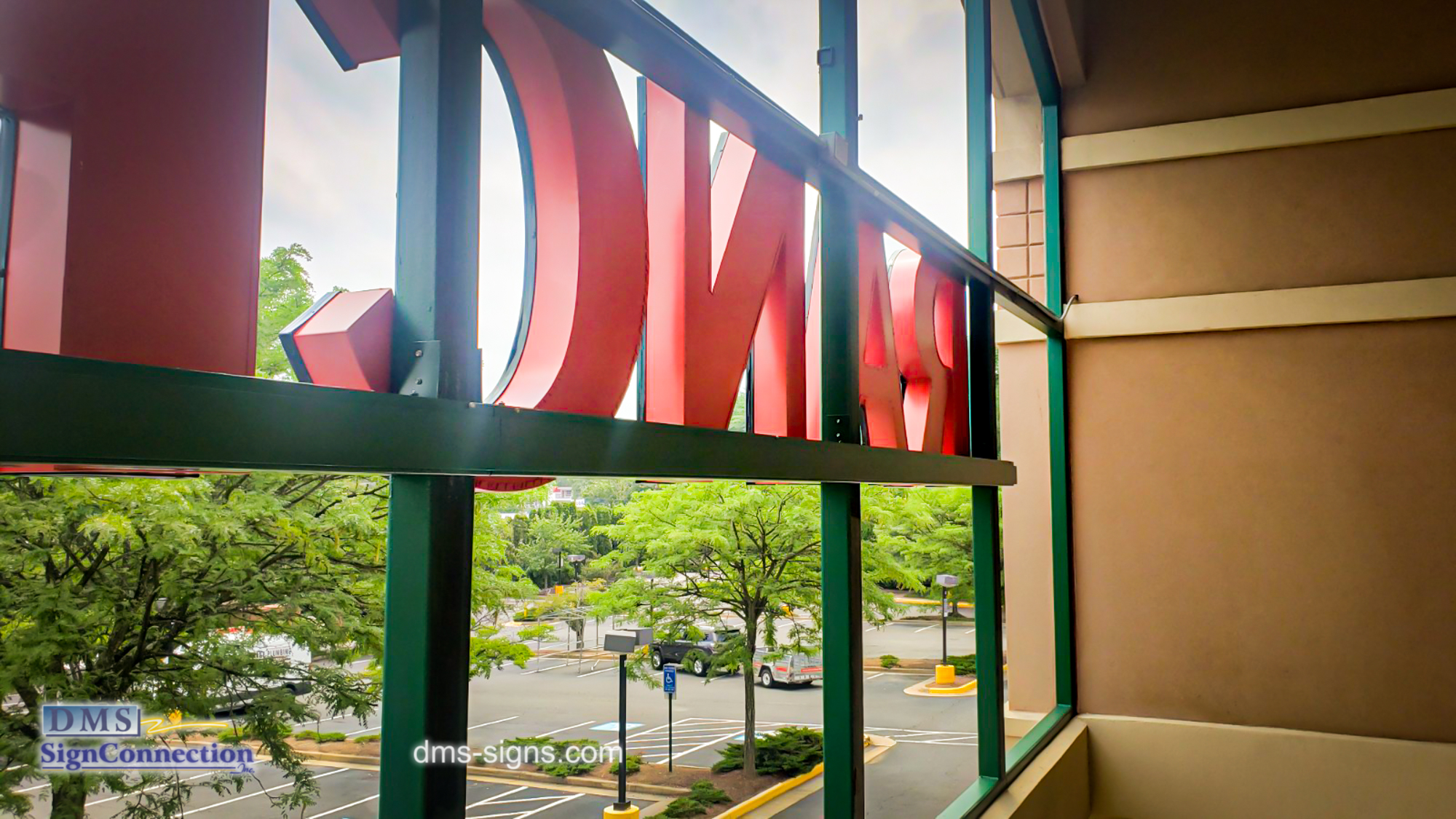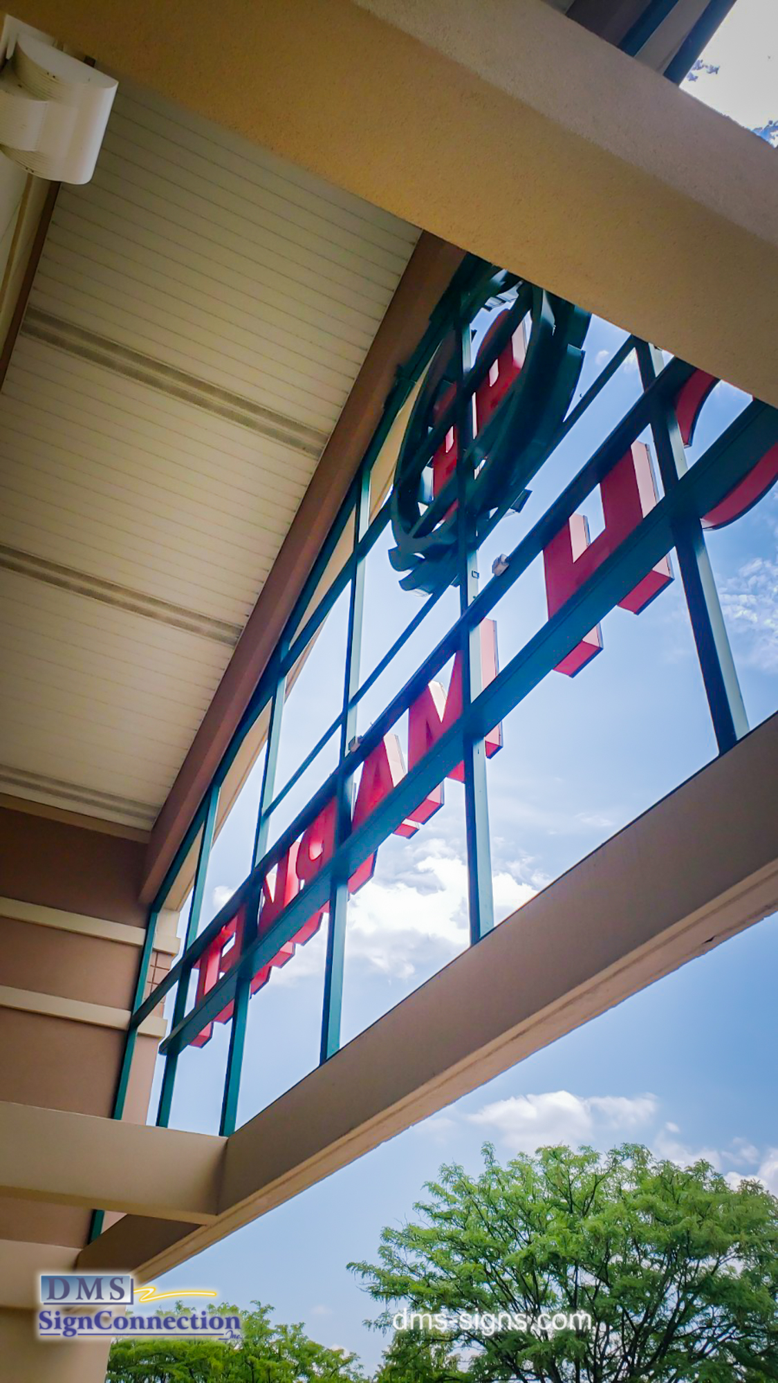 We at DMS Sign Connection have a philosophy of finding the shared value between our customer needs and what we offer. Our client, 99 Ranch Market approached us with a challenge. The particular architectural fixture in the facade of this building is a grid of square tubing. The requirements were to install the channel letters flushed to the grid, to match the color of the grid and conceal the electrical wiring.