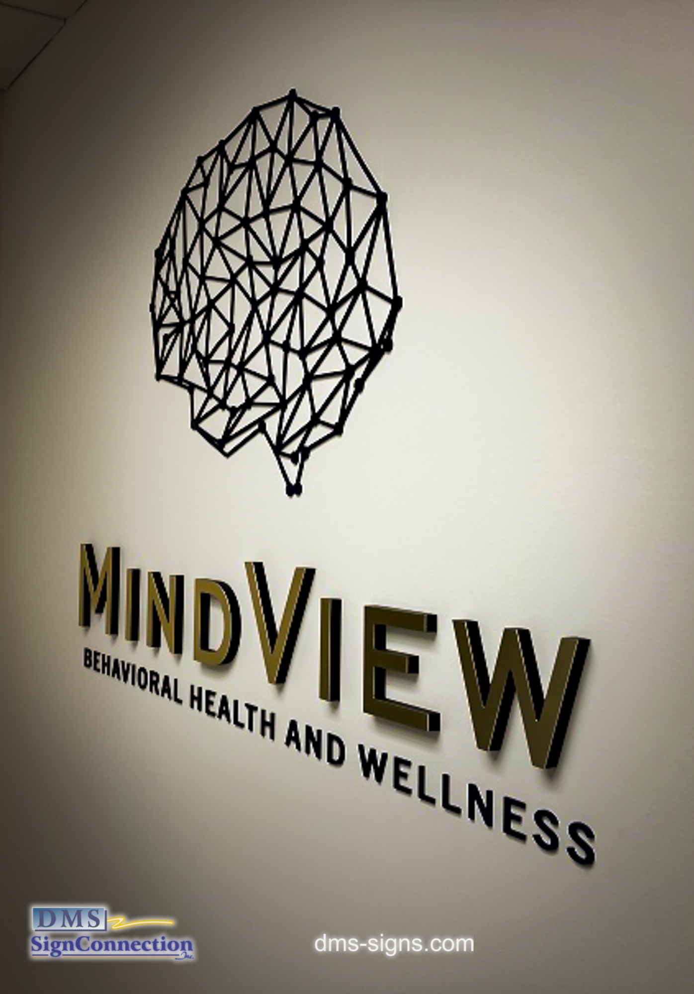 - Mindview Behavioral Health and Wellness Logo made out of Acrylic Dimensional Letters with Metal Finish Laminate. It’s a great Alternative to expensive metal cut out letters.