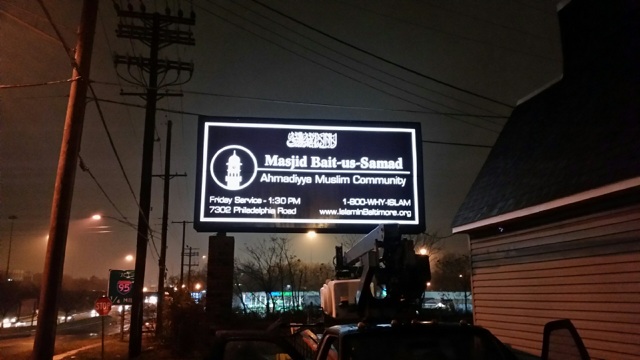 Masjid Bait-us-Samad – Baltimore, MD. Retrofit monument sign from fluorescent lighting to low energy consumption LED lighting, and fabricate and install two new faces.<